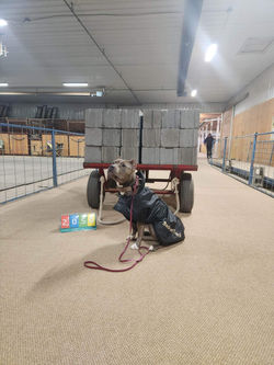 Aloy's temperament made her stand out from her litter - she has an intense drive to please and work with her handler. Because of this, we have high expectations for her to light it up in sports. She has completed multiple sets of obedience classes, as well as group classes for rally obedience, weight pull, treibball and nose work. She has proven herself as a great scent detection, rally obedience and weight pull dog. She recently picked up her first Perfect Score in Rally Obedience and we anticipate many more of those to come!