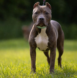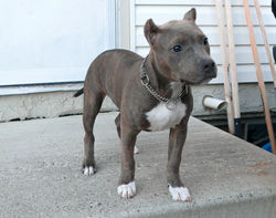 Aloy is a stunning blue brindle with white feet and a big white chest that reaches up to her chin. She is very correct structurally which is something that will always be extremely important to us when choosing puppies to hopefully move forward with in our program. We LOVE her brindle pattern and we can't wait to see what she looks like at maturity!