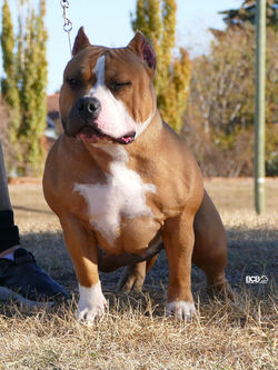 Standing around 16.5” at the shoulder, Sunny is a beautiful little American Bully with a compact, balanced build and quite agile for her size. She has lovely front and rear angles, a strong and level topline, and can move surprisingly fast when she wants to. Her structure and proportions are lovely, giving her a natural “look at me” presence. Though she could certainly be competitive in conformation, Sunny would be just as happy as someone’s beloved pet. She’s a striking girl whose combination of breed type, balance, and personality make her a joy to watch both in motion and at rest.